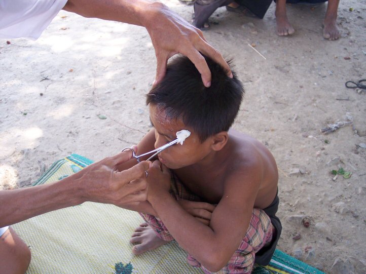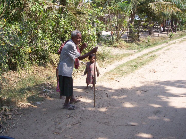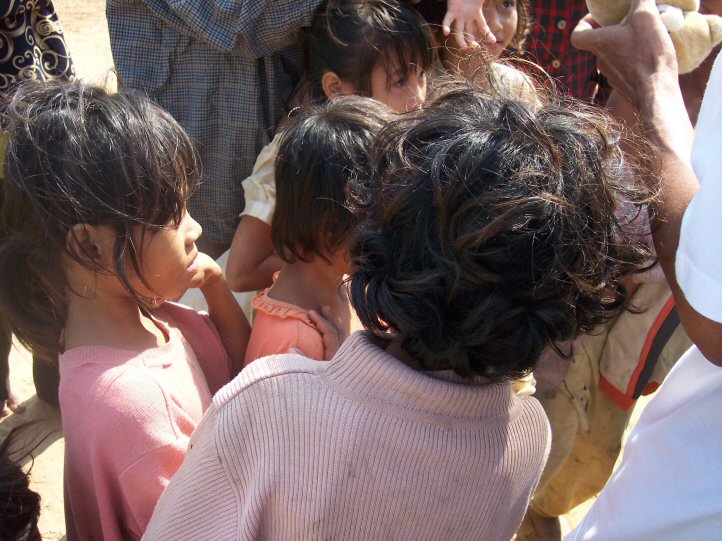 Nous a conduit dans les carrières. Nous y avons trouvé des enfants avec des plaies profondes et infectées, occasionnées par les éclats des pierres qu’ils cassent. Il nous a fallu nettoyer et panser ces blessures.A propos des lunettes de protection que nous leur avions offertes, leur destination première qui était de protéger leurs yeux des éclats de pierres, a été détournée et profitent au paysans qui ainsi se protégent des poussières lors du battage du riz.