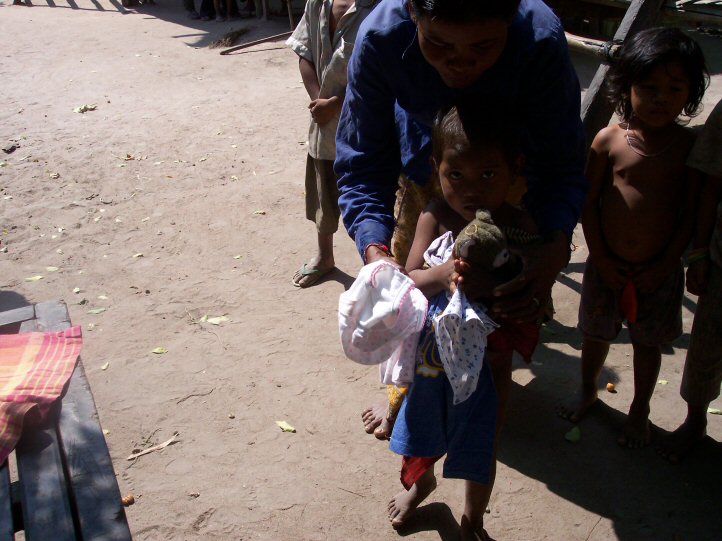 Notre aide est également allée vers les villageois. Cette année si dans la décharge, la situation n’a pas changé, pour ces villageois elle a évolué dans le mauvais sens.En effet nous avons découvert un nombre inquiétant d’enfants atteints de typhoïde. Cette maladie qui dans notre monde est facilement soignable, devient une catastrophe dans ces villages et grand nombre de ces enfants ne s’en remettront pas par manque de moyen. A l’origine de cette épidémie, un insecte qui se trouve dans les fruits que les enfants mangent.