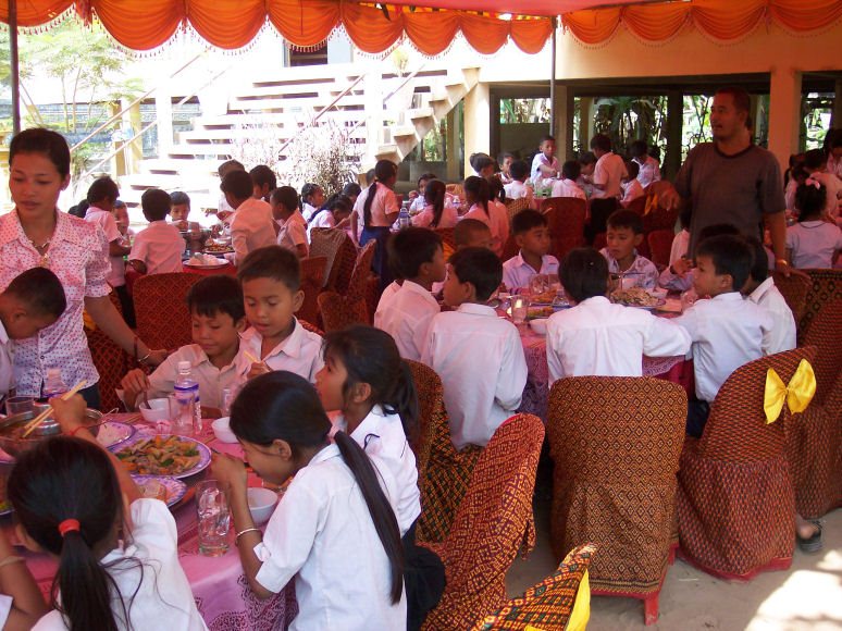 Ce repas a été suivi par les traditionnelles danses Khmères et, sur un rythme endiablé, les enfants ont pu exprimer toute leur joie de vivre sur de la musique moderne.