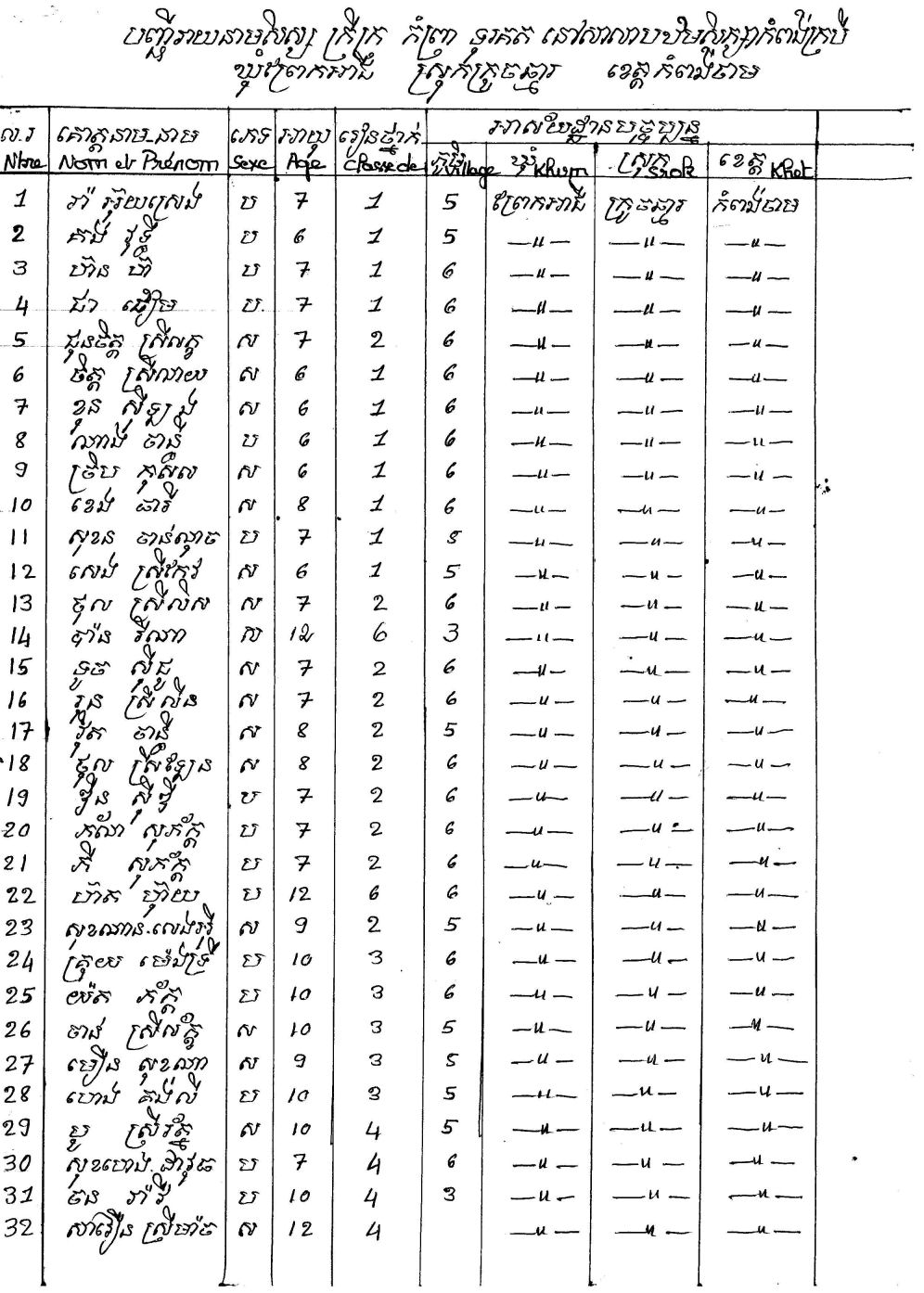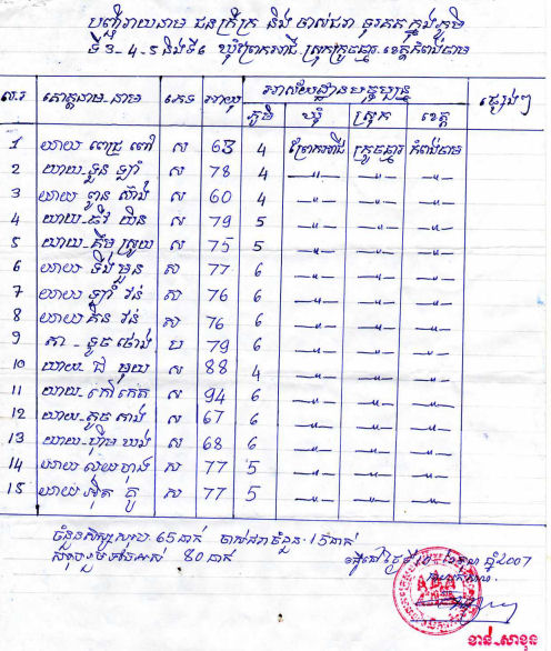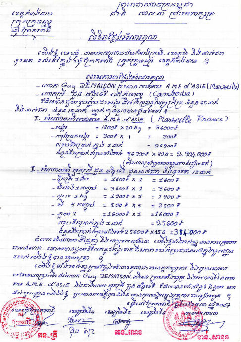 Avec également, les remerciements du Directeur de l’école et des différents chefs de village en Khmer avec la traduction en Français ainsi que la listes des enfants et des personnes âgées à qui nous avons distribué le riz.