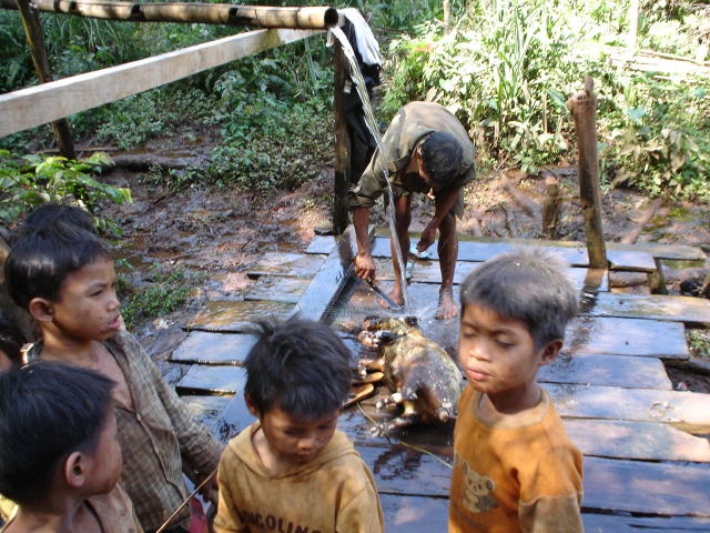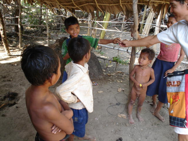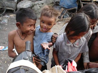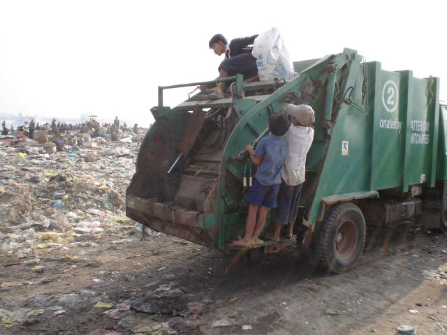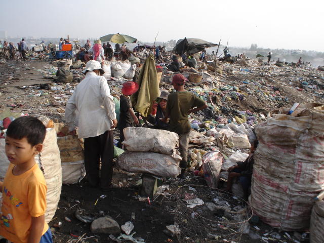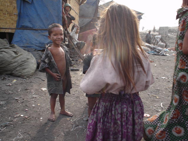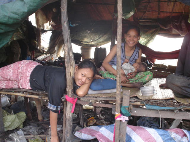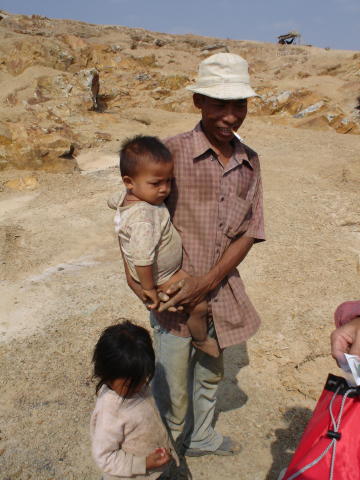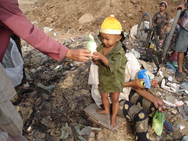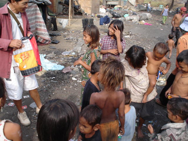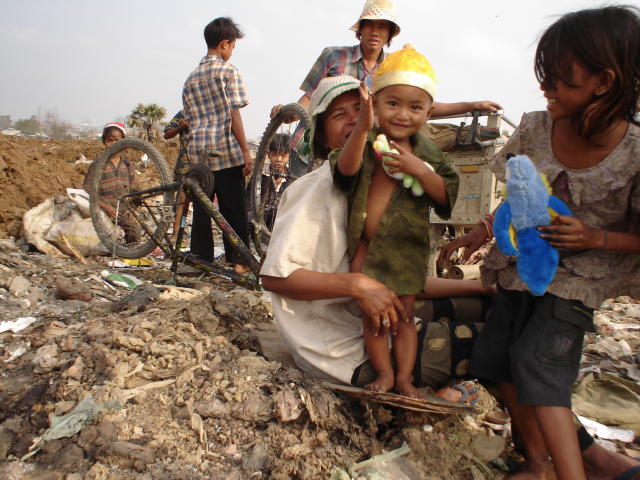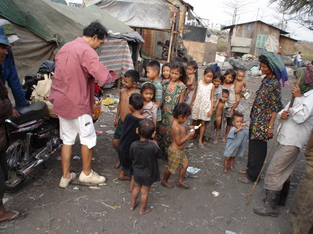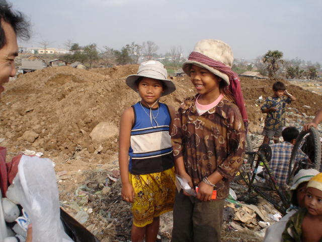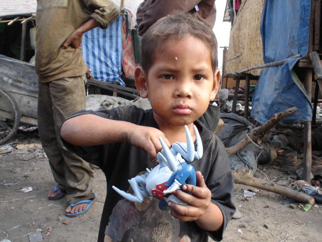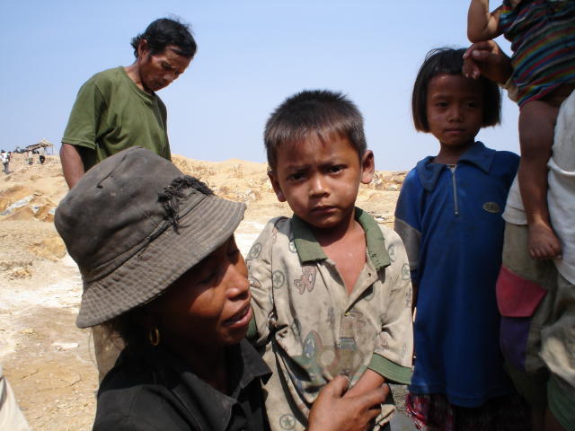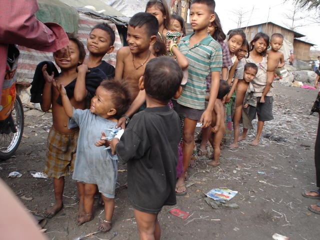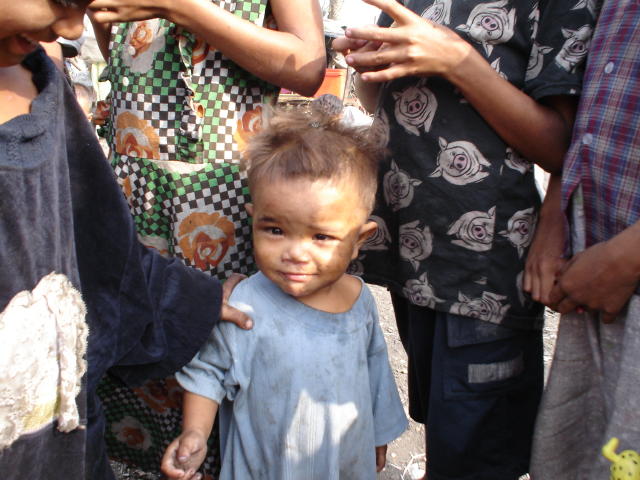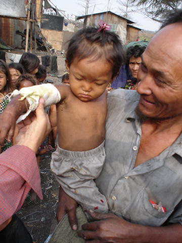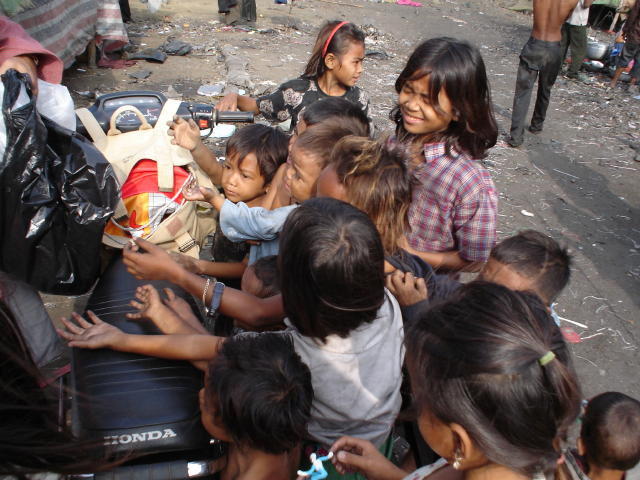 Cette année, en plus de l’aide en faveur des camps de réfugiés et de ses actions dans la région de Phnom Phen, l’association AME D’ASIE a apporté un secours financier aux sinistrés du tsunami de l’île de Koh Pee Pee. Compte rendu des opérations menées dans la région de Phnom Penh. La première opération s’est située dans la décharge nous a permis de nous rendre compte de la misère de cette population.Des familles entières issues des campagnes cherchent dans cette décharge à ciel ouvert et dans une odeur pestilentielle, un moyen de subsistance.Pour un ½ dollar par jour, ils travaillent nuit et jour dans ce marécage d’ordures en putréfaction.Nombreux sont ceux qui n’en sortiront jamais.Souvent atteints de maladies graves, ils n’ont pas les moyens de se soigner ni même d’arrêter le travail pour aller consulter un médecin.A l’exemple de cette fillette de 4 ans, déshydratée par une diarrhée, que nous avons trouvée entourée de mouches et qui, sans notre secours immédiat, ne serait plus de ce monde.La mère interrogée sur cette inaction de sa part, nous a expliqué qu’elle ne pouvait pas se permettre de cesser le travail pour consulter un médecin sans mettre en danger la vie de ses autres enfants.Nombreux sont également les enfants qui se font écraser par les pelles mécaniques ou les camions. Les parents reçoivent alors 50$ de dédommagement.Pour soulager cette détresse, en plus d’une soupe 2 fois par semaine, nos faibles moyens ne pouvant nous permettre plus, nous avons distribué quelques jouets et soigné quelques vilaines plaies.