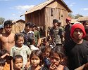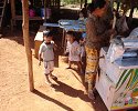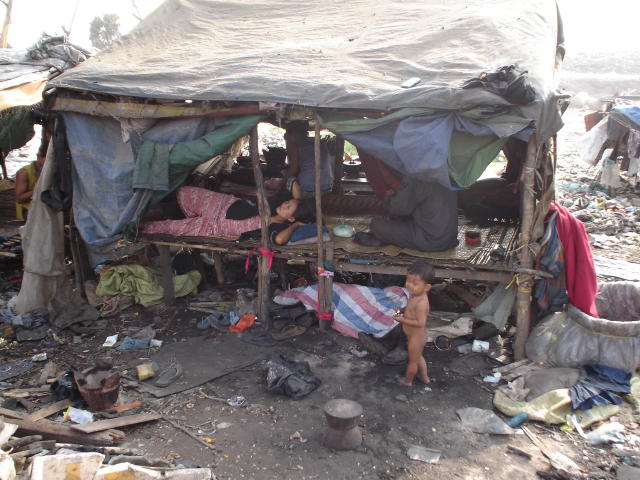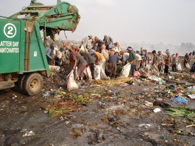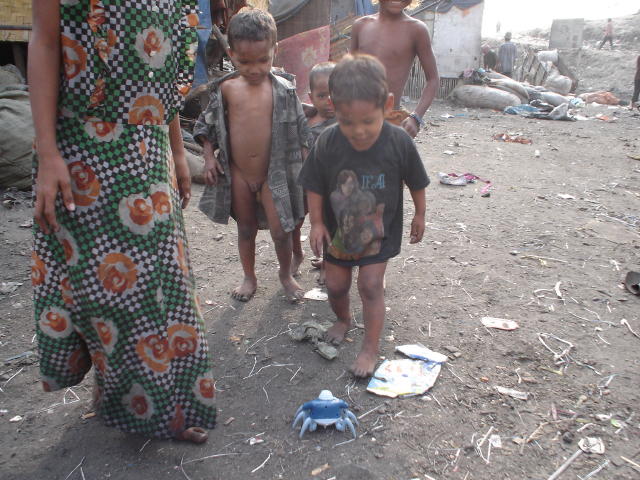 La première opération s’est située dans la décharge nous a permis de nous rendre compte de la misère de cette population.Des familles entières issues des campagnes cherchent dans cette décharge à ciel ouvert et dans une odeur pestilentielle, un moyen de subsistance.Pour un ½ dollar par jour, ils travaillent nuit et jour dans ce marécage d’ordures en putréfaction.Nombreux sont ceux qui n’en sortiront jamais.Souvent atteints de maladies graves, ils n’ont pas les moyens de se soigner ni même d’arrêter le travail pour aller consulter un médecin.A l’exemple de cette fillette de 4 ans, déshydratée par une diarrhée, que nous avons trouvée entourée de mouches et qui, sans notre secours immédiat, ne serait plus de ce monde.La mère interrogée sur cette inaction de sa part, nous a expliqué qu’elle ne pouvait pas se permettre de cesser le travail pour consulter un médecin sans mettre en danger la vie de ses autres enfants.Nombreux sont également les enfants qui se font écraser par les pelles mécaniques ou les camions. Les parents reçoivent alors 50$ de dédommagement.Pour soulager cette détresse, en plus d’une soupe 2 fois par semaine, nos faibles moyens ne pouvant nous permettre plus, nous avons distribué quelques jouets et soigné quelques vilaines plaies.